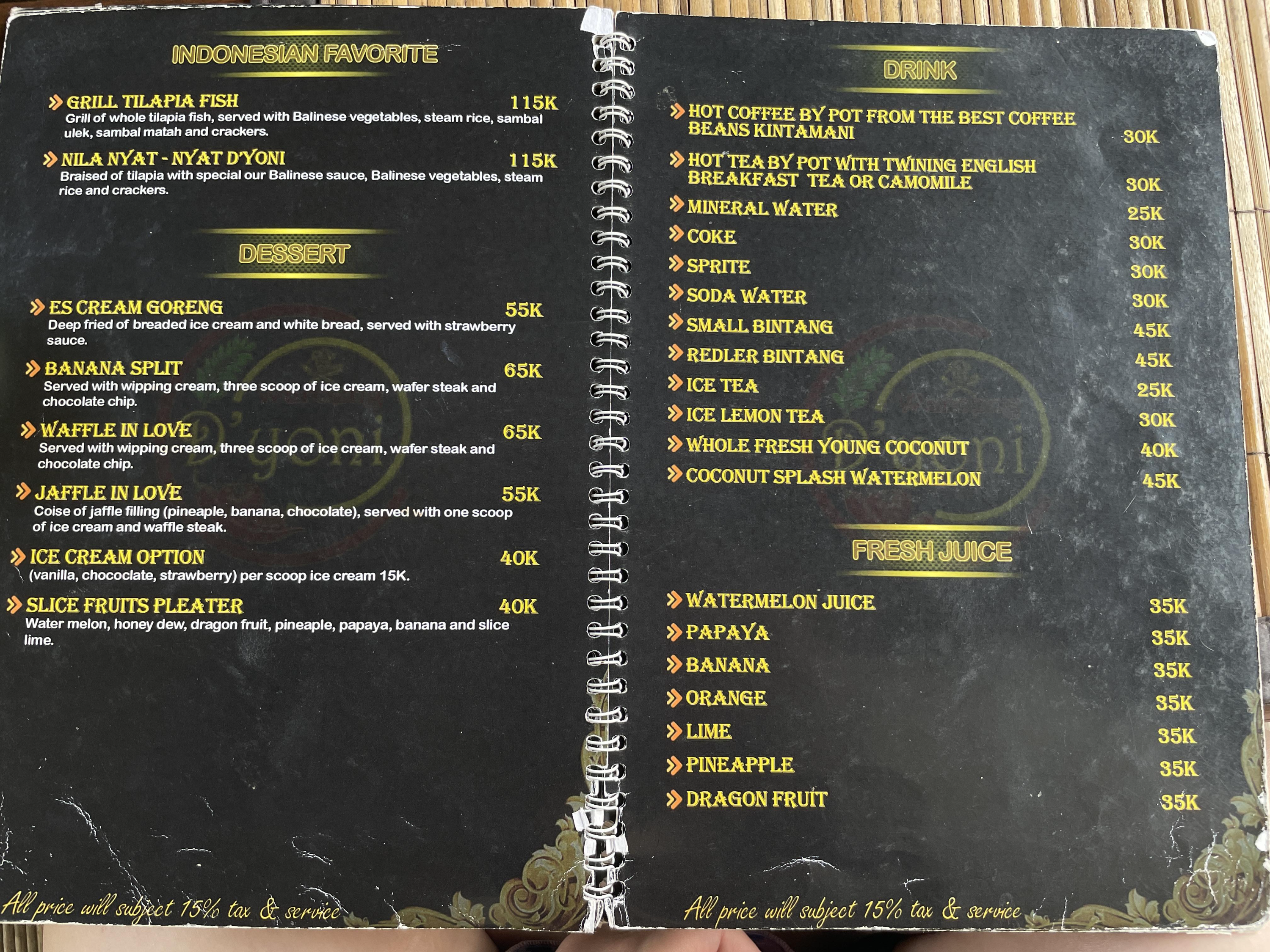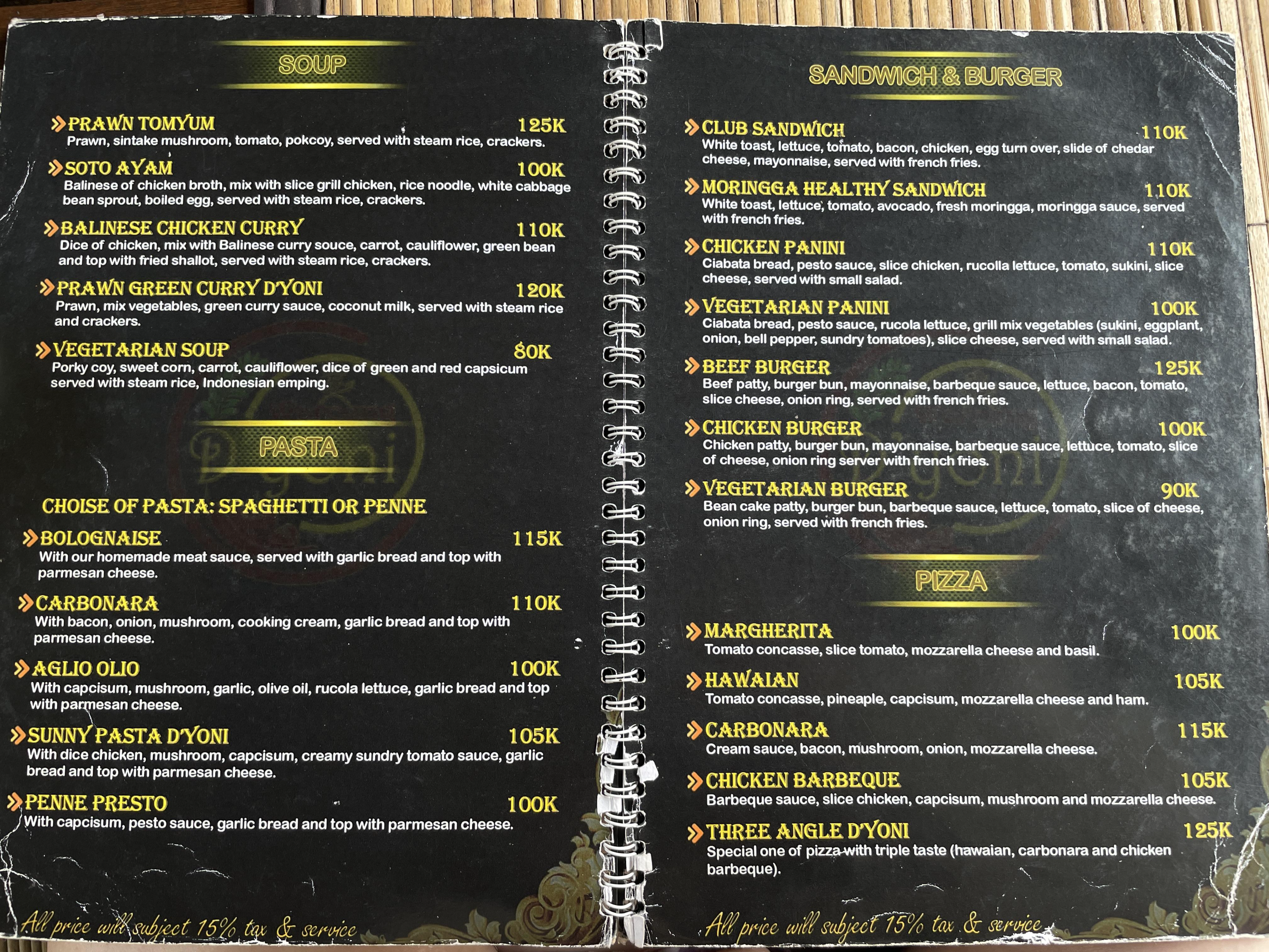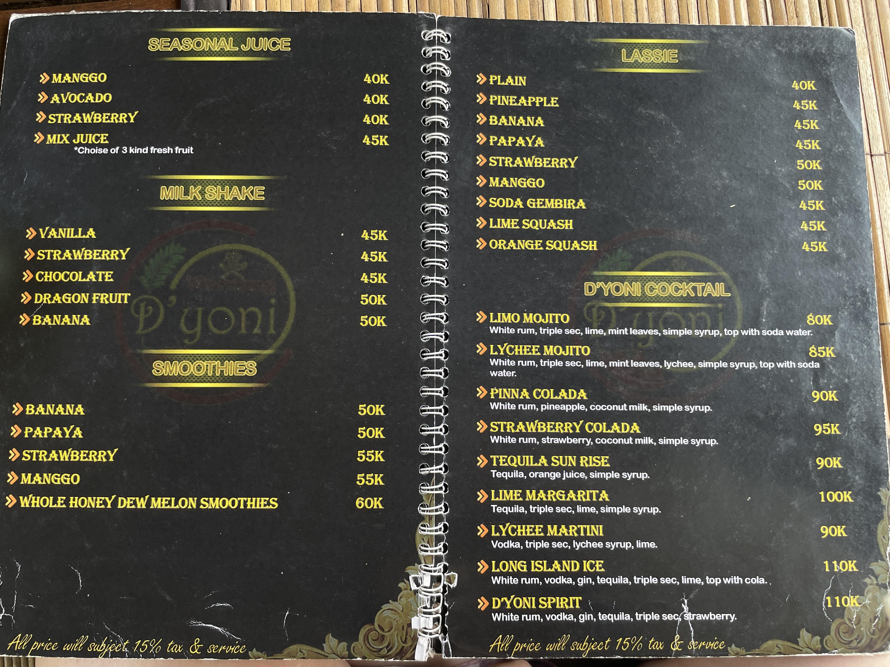 콩이 남자, 여자로 나눠지는데 여자는 50,000 루피아, 남자는 75,000 루피아 였고