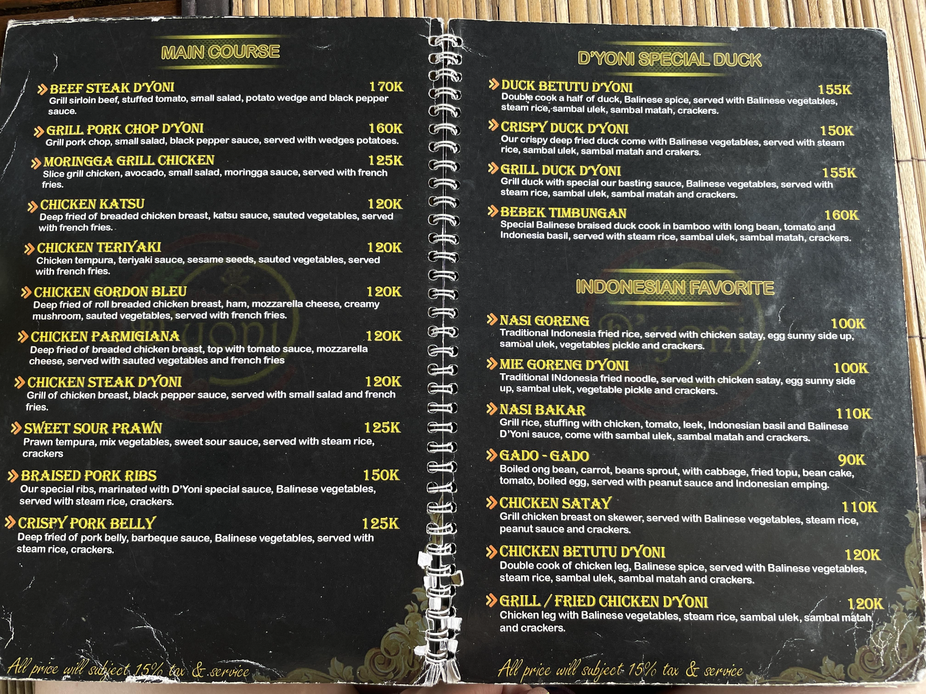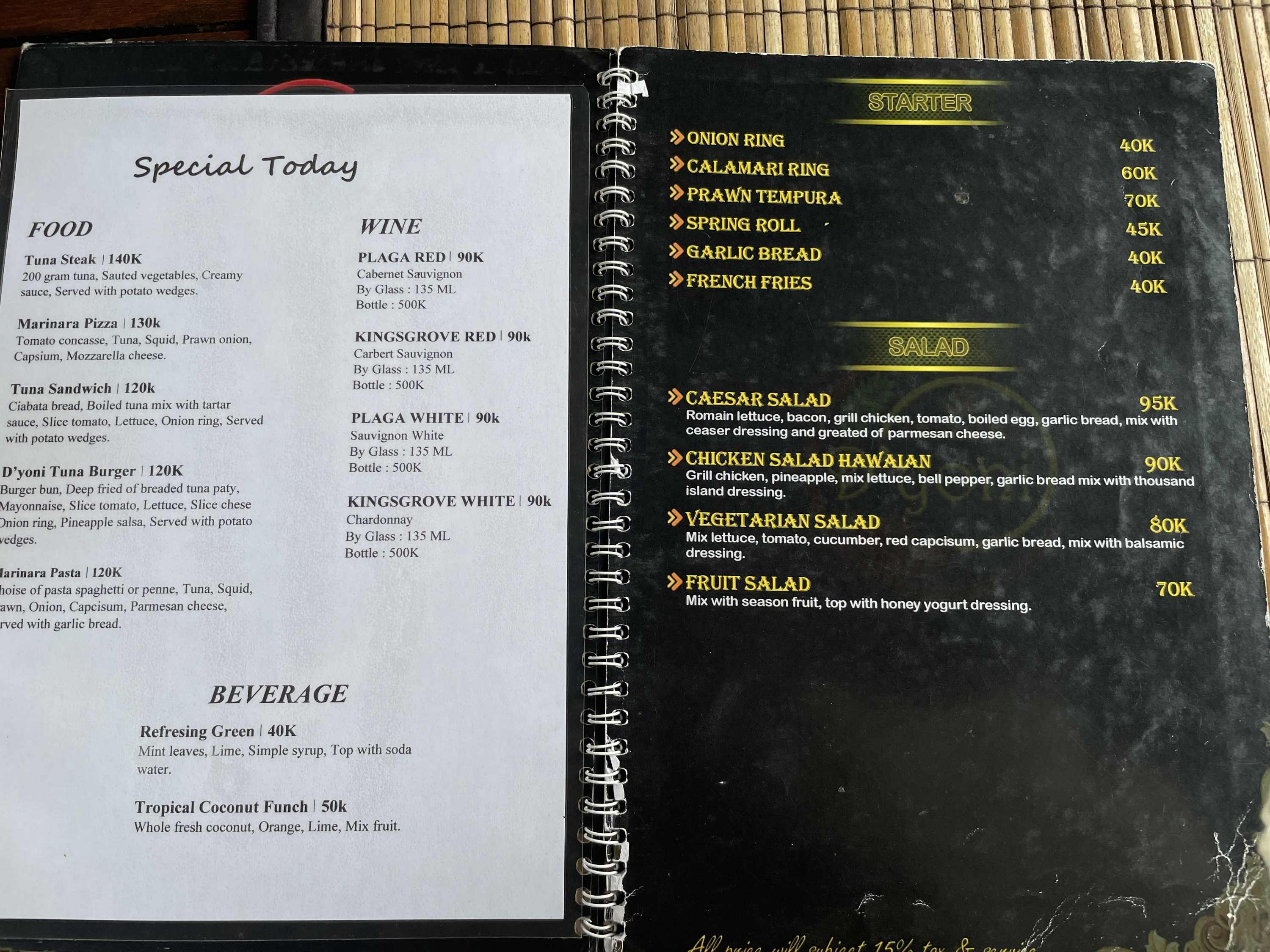 여기도 이렇게 아래의 움막과 계단을 올라가서 뷰가 좋은 테이블이 있었는데 우리는 아래에 앉게 되었습니다.
