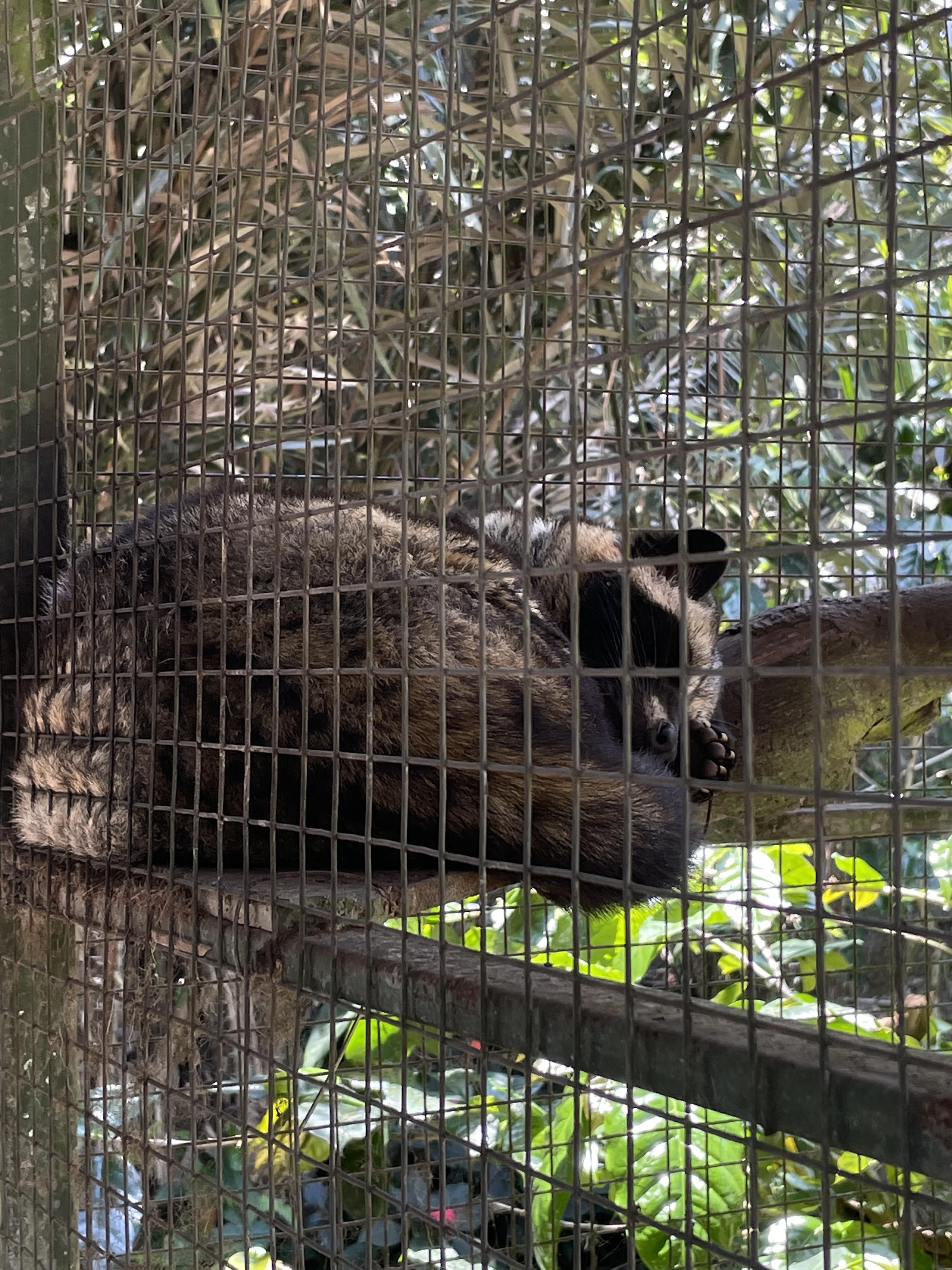 사향고양이 처음 봤는데 너무 귀여웠는데 철창안에 있으니까 조금 불쌍하고 야행성이라서 낮에는 낮잠을 잔다고 해서 조용히 보고 지나왔습니다.